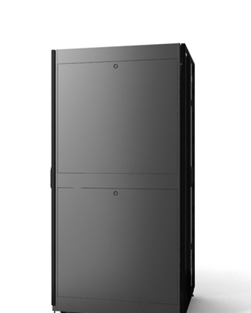 Half-height side panels make suitable size and weight for easy handling and mounting to rack. Side panels are lockable utilizing same key with the doors